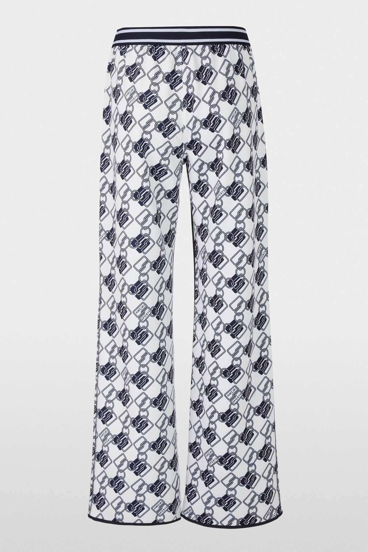 Description: Ce pantalon de jogging affiche une silhouette ample et décontractée, soulignée par un imprimé graphique intégral à motif de maillons entrelacés. Sa coupe droite avec bandes latérales contrastantes évoque un esprit sport-chic revisité. Porte-le avec un t-shirt ajusté ou une veste courte pour un look urbain maîtrisé.