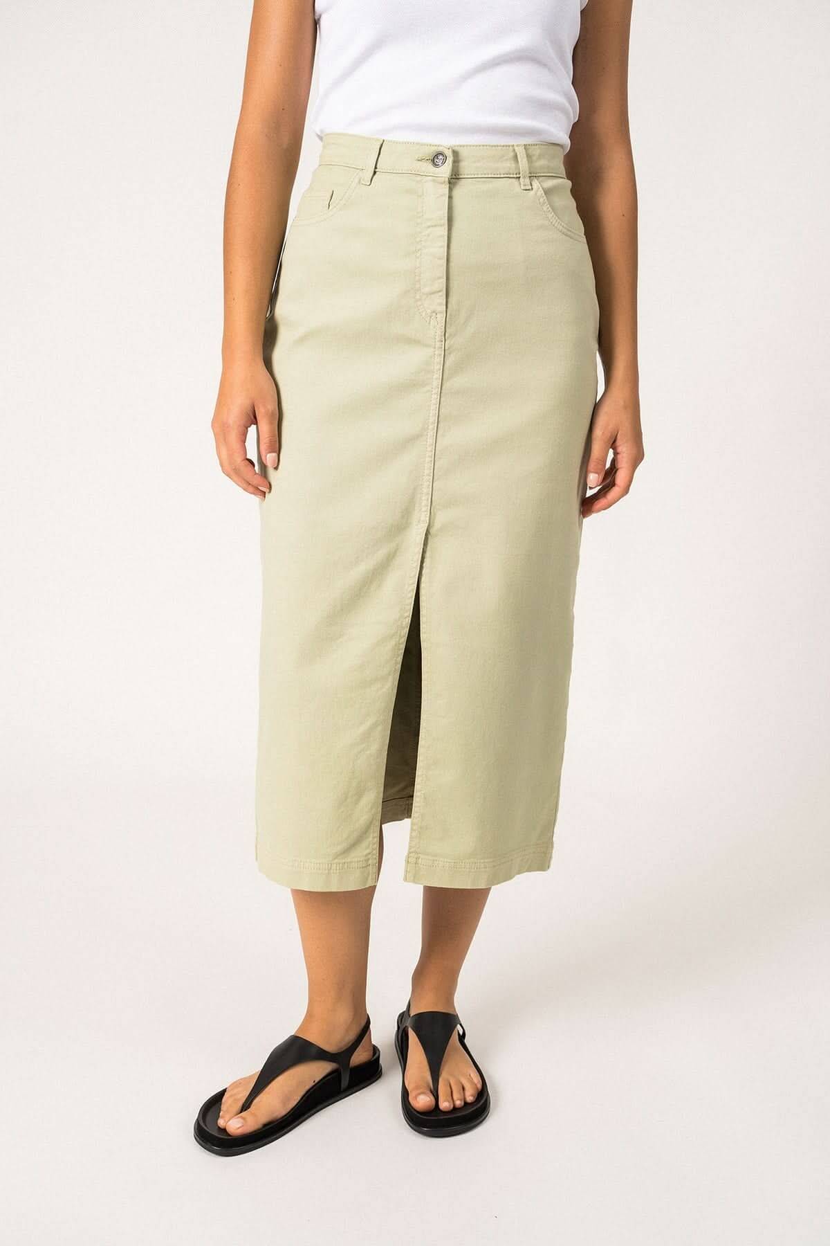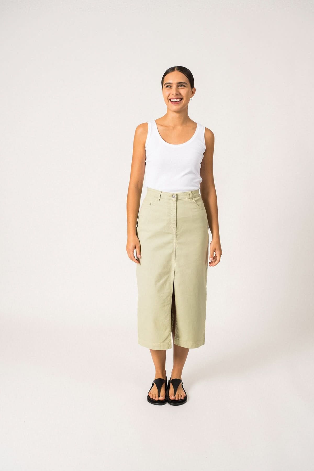 Description : Élégante et moderne, la jupe Julia séduit par sa coupe droite et sa fente sur le devant. Confectionnée en sergé de coton avec une touche d'élasthanne, elle offre confort et structure pour un look urbain et polyvalent.