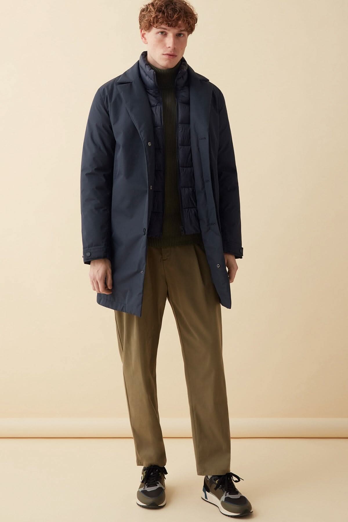 Manteau pour homme en tissu recyclé confortable à trois couches associé à un nylon léger. Look métropolitain pour ce modèle de pardessus lisse à l'extérieur et matelassé à l'intérieur. La double ouverture frontale avec boutons et zip et le plastron fixe ajoutent cette touche sportive typique des vêtements Colmar Originals. Un vêtement qui respecte les besoins de l'environnement réalisé avec des matériaux recyclés et garni de ouate écoconçue obtenue à partir de la récupération de manteaux en poil de chameau et de soie réélaborés et mélangés à des fibres recyclées pour créer une alternative durable au duvet classique. Ce modèle est accompagné d'un shopper pratique en tissu recyclé.