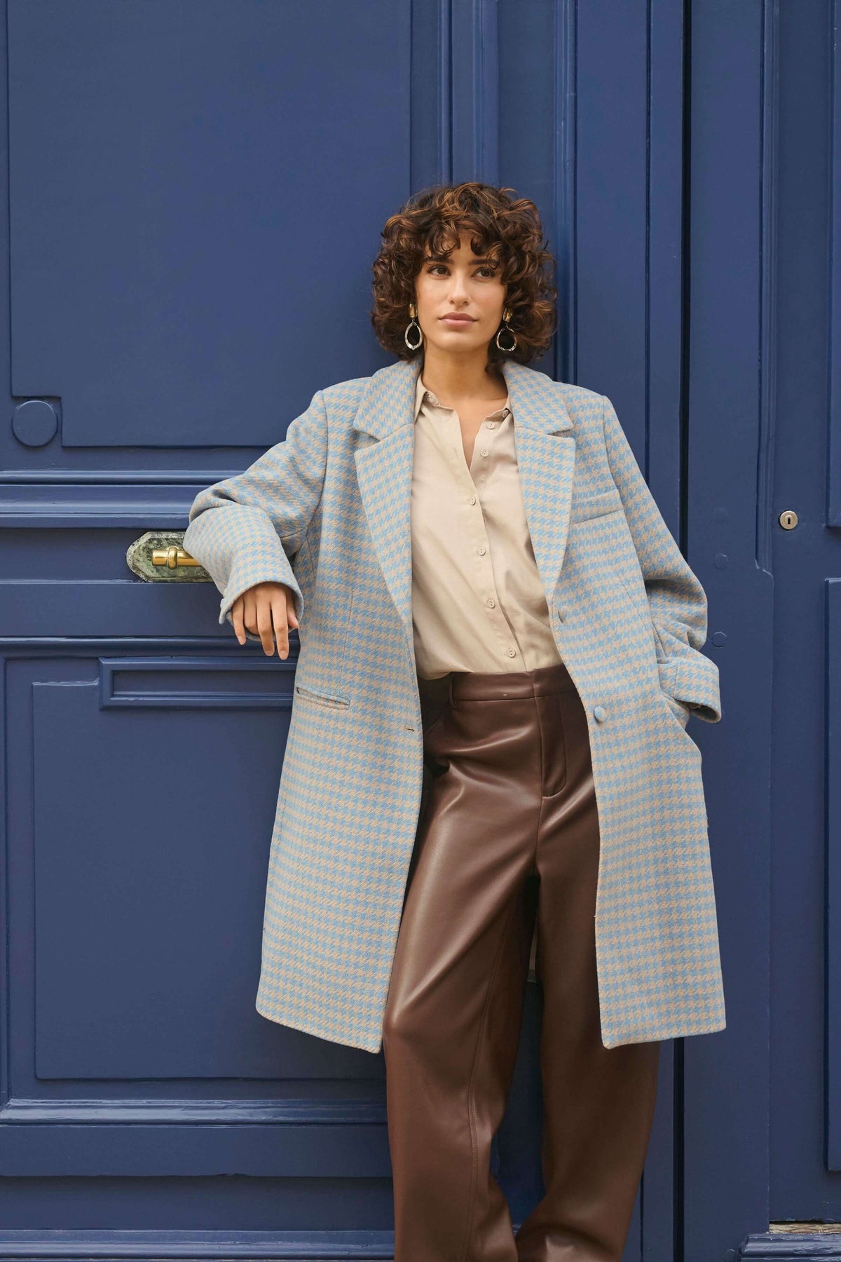 Description : Ce manteau à motif pied-de-poule revisite un grand classique avec une touche moderne et raffinée. Sa coupe droite et son tissu texturé assurent une allure élégante et structurée. Parfait pour les superpositions automnales, il se porte aussi bien sur un tailleur que sur un jean pour un look chic et polyvalent.