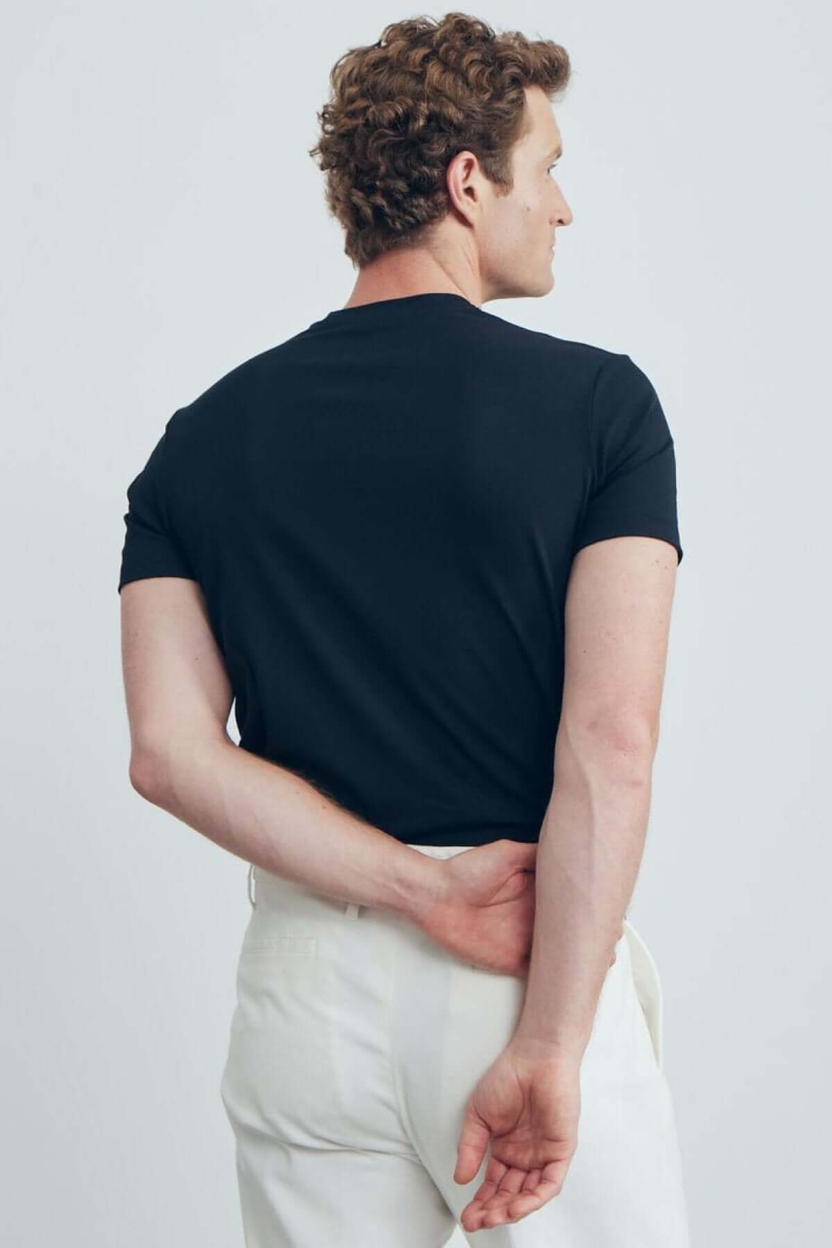 Description : T-shirt uni à col rond. Confectionné dans un tissu 4Flex de haute qualité, il assure une liberté de mouvement exceptionnelle et un confort optimal au quotidien. À porter seul avec un jean ou sous une veste pour un look soigné et moderne.