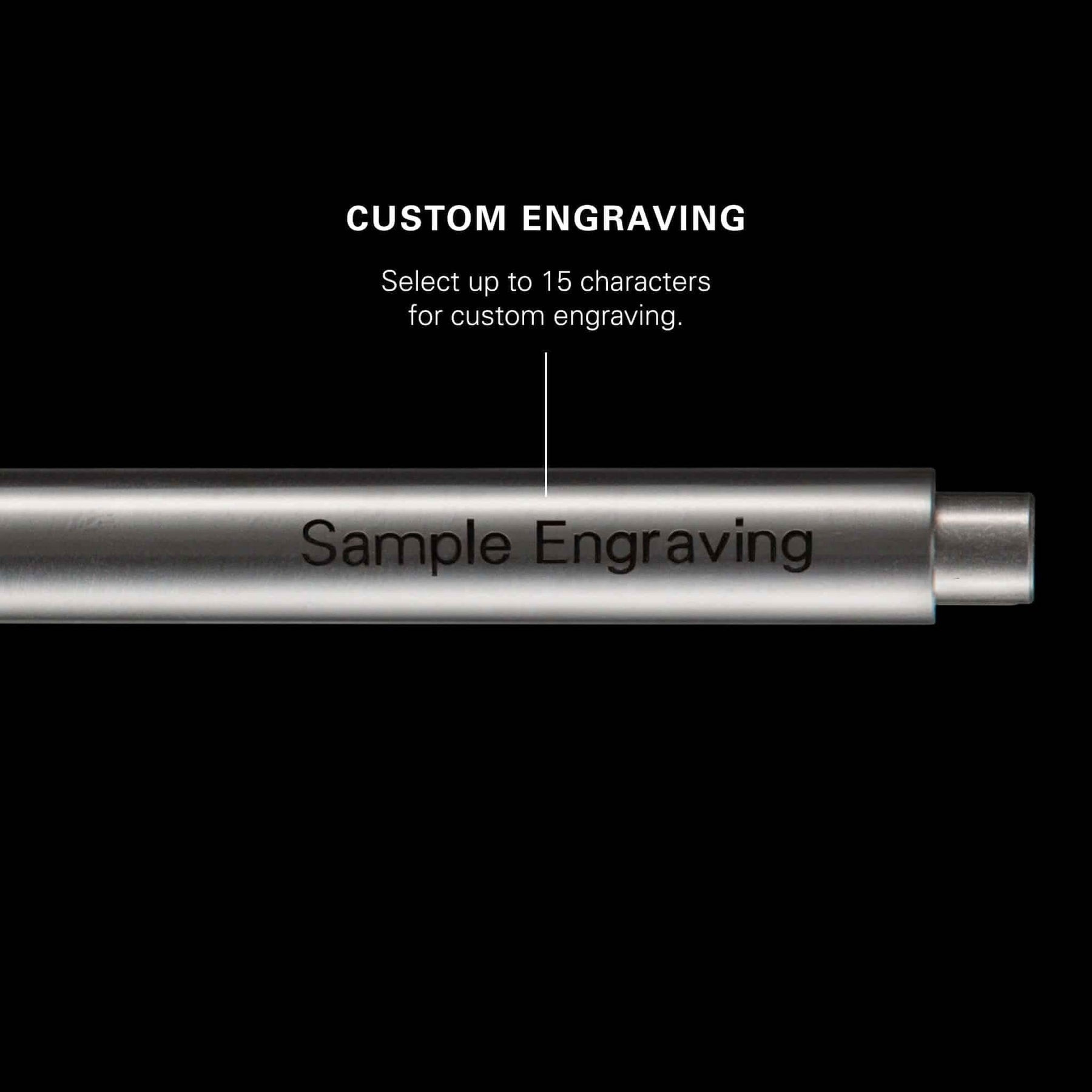 Stylish pen featuring custom engraving option for personalized touch, showcasing sample text.
