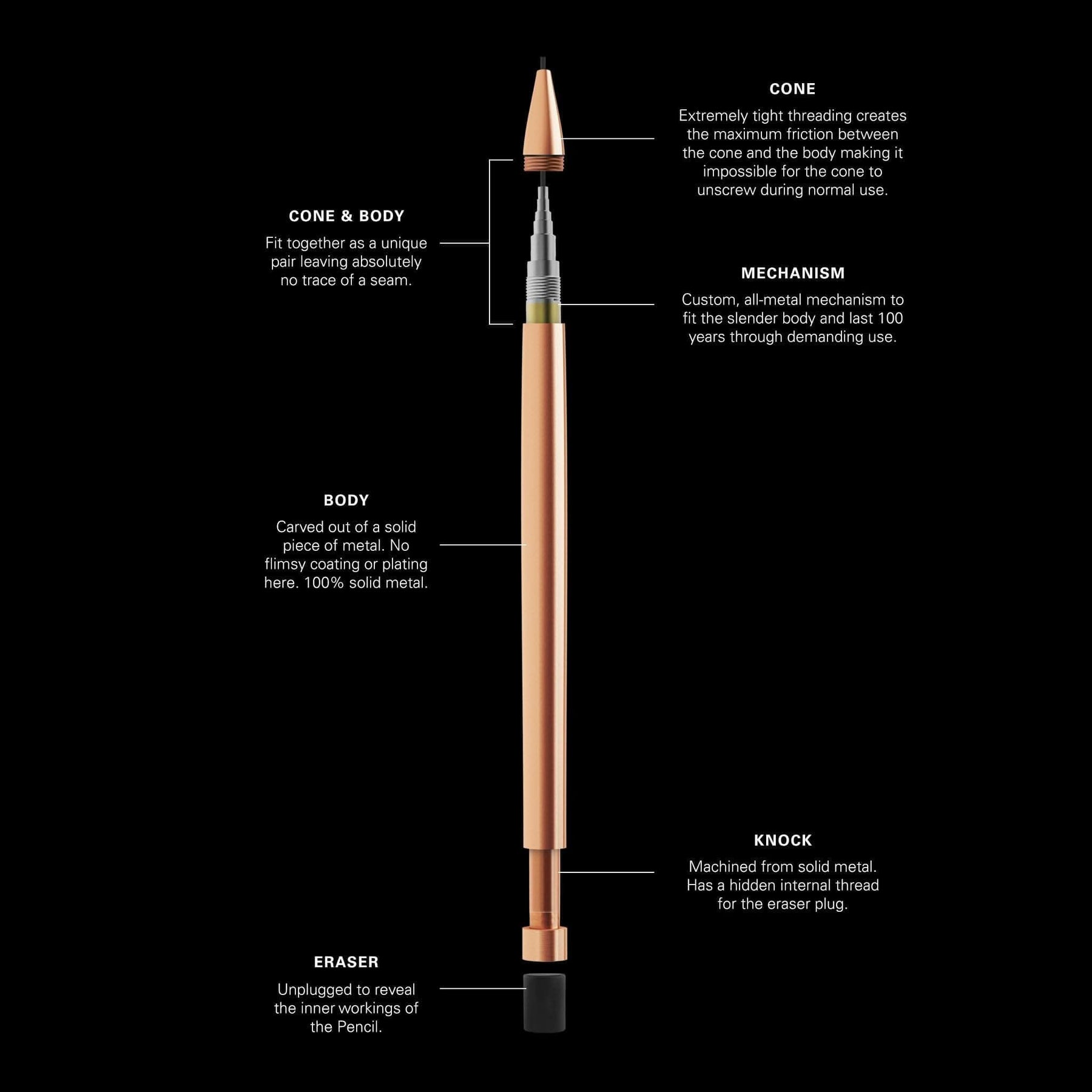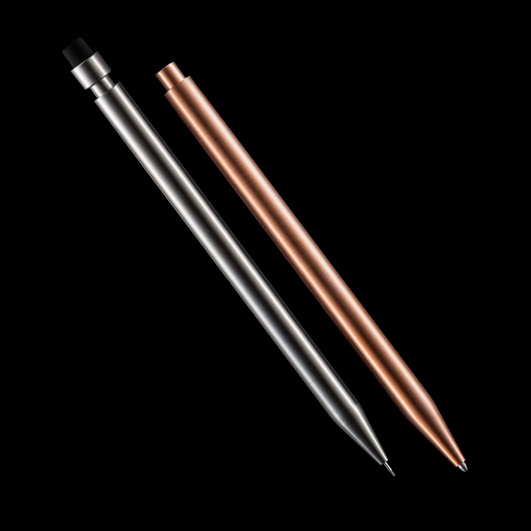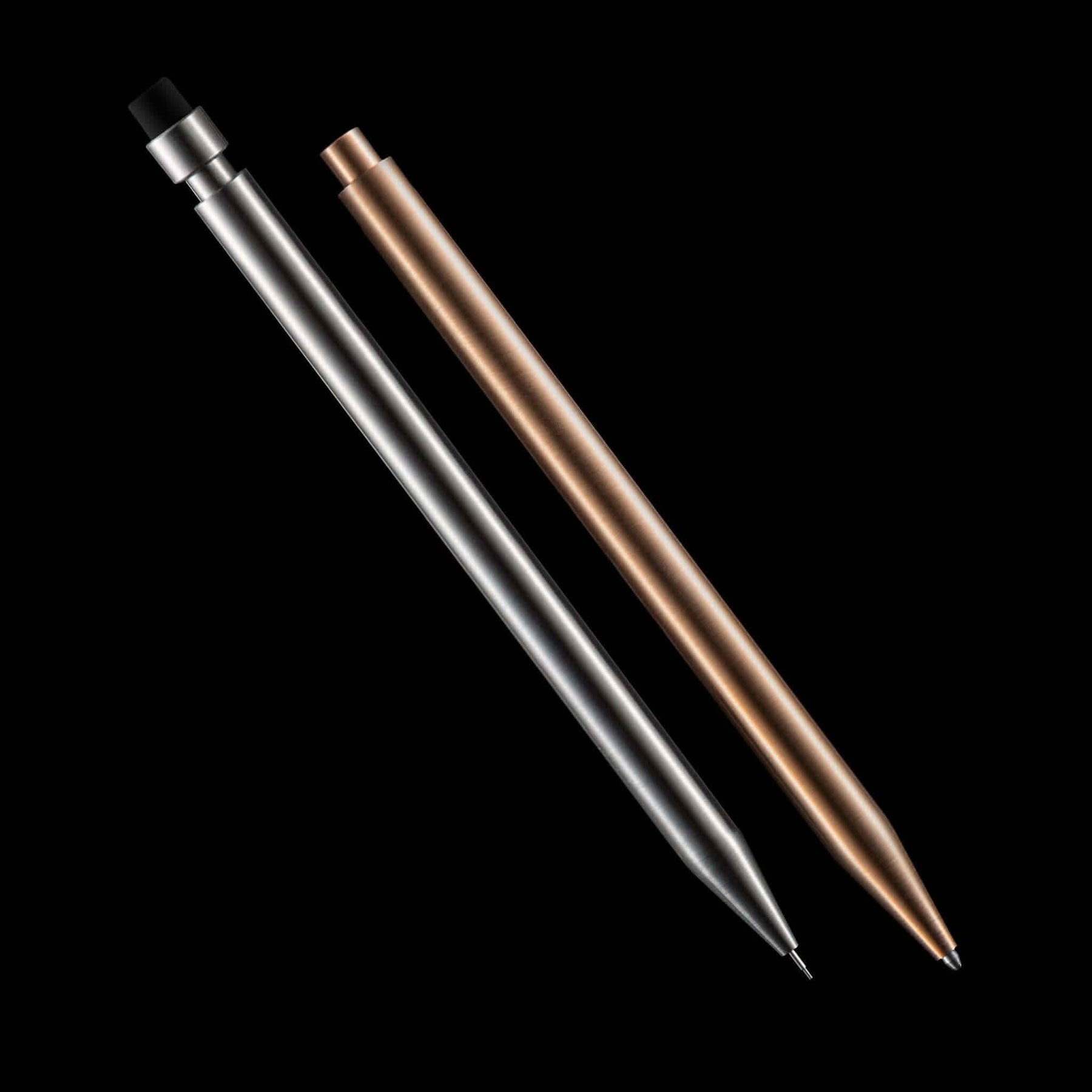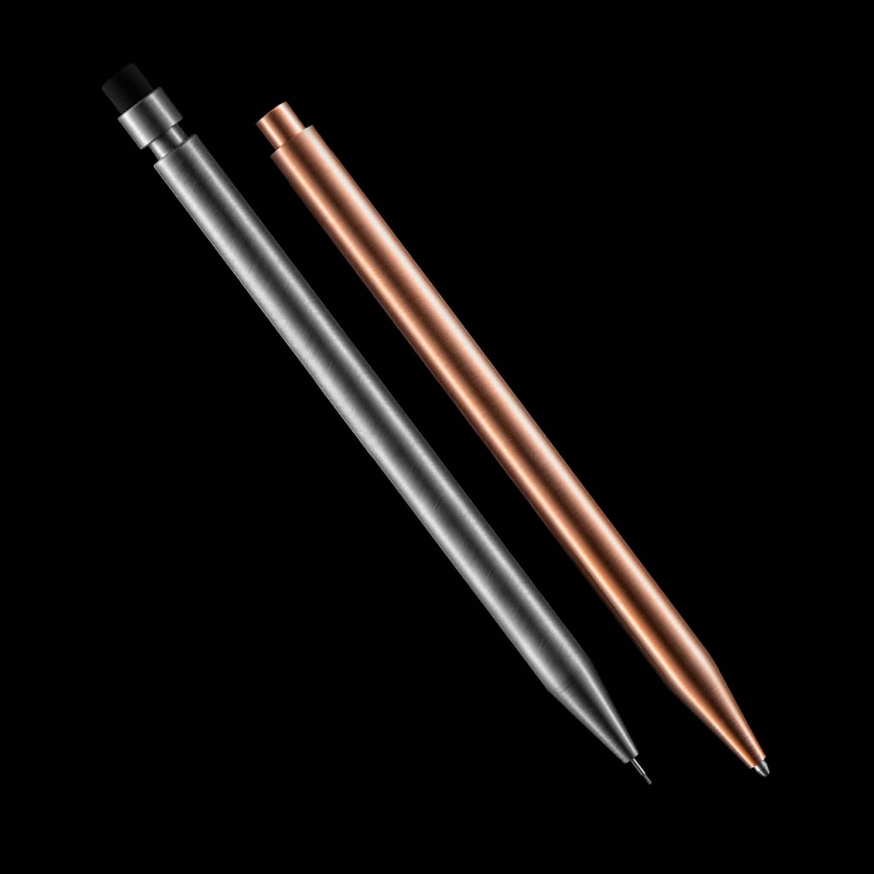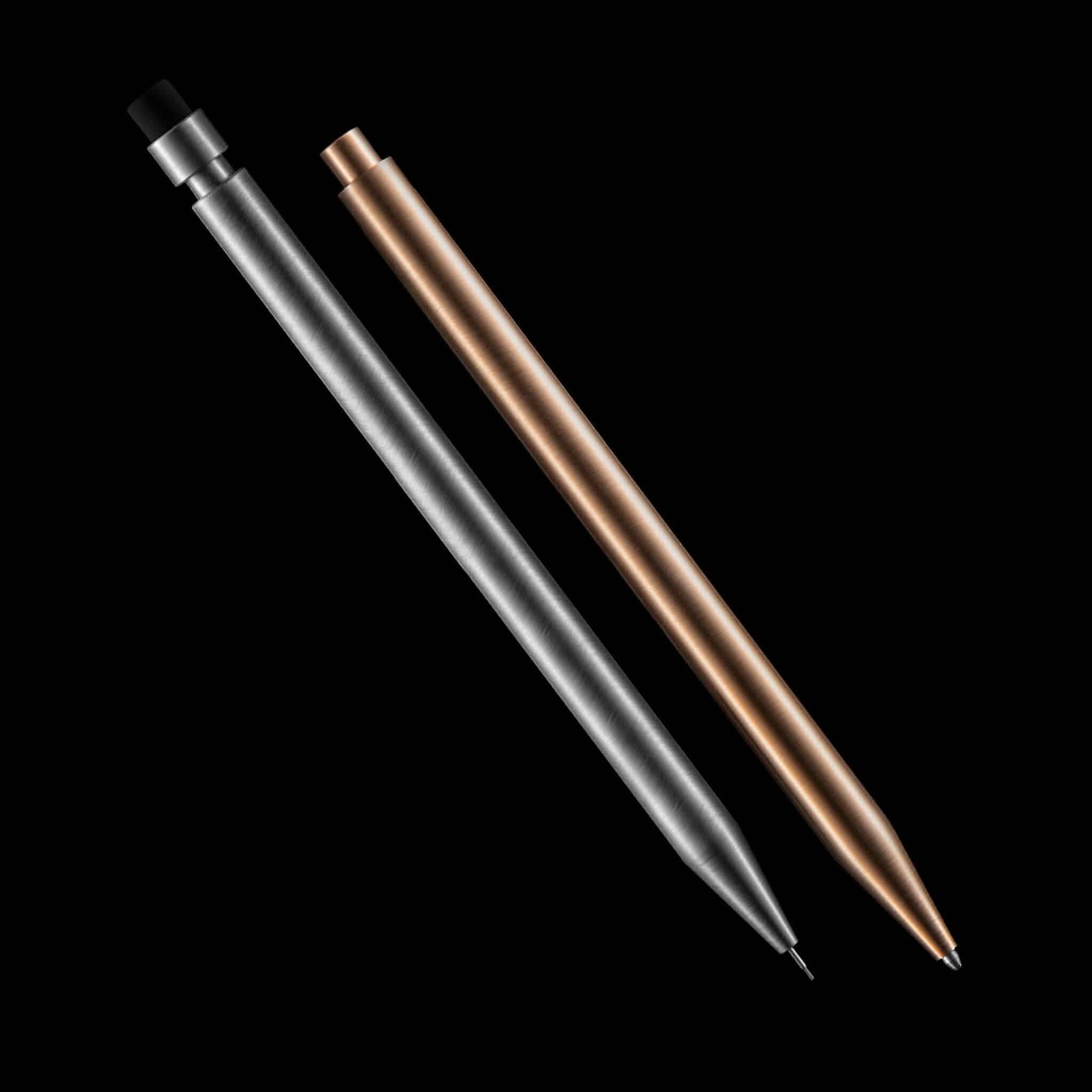 Chaque crayon Modern Fuel est taillé dans un bloc de métal solide et ne contient aucune pièce en plastique. Le crayon est une merveille d'ingénierie qui s'emboîte parfaitement. Il n'y a pas deux crayons identiques, le cône et le corps sont accouplés pendant la production pour une présentation impeccable.