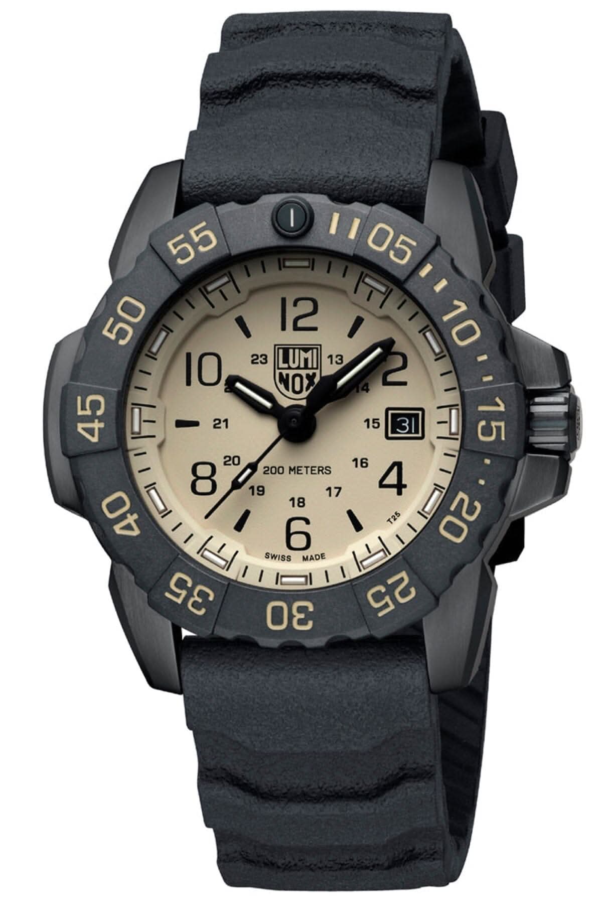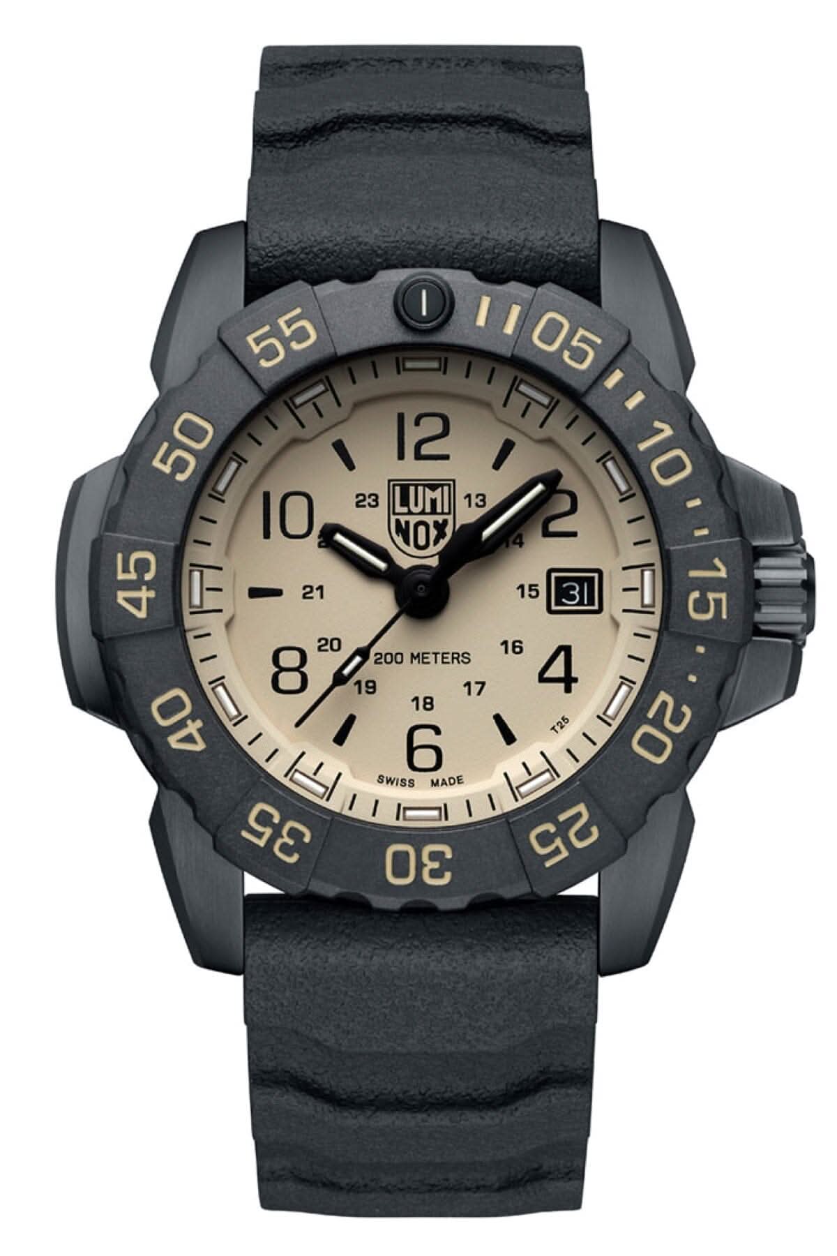 La montre Navy SEAL Foundation de Luminox allie durabilité et utilité. Avec le jeu de bracelets, la montre offre polyvalence et fonctionnalité avec deux options en caoutchouc et en nylon. Le boîtier de 45 mm en acier avec son cadran couleur sable et sa lunette en CARBONOX en font une belle montre qui nous rappelle l'appel au devoir auquel chaque Navy SEAL répond et comment nous pouvons les soutenir après leur courageux service dans notre pays. Ce produit est livré sous forme d'ensemble : la montre, y compris un bracelet en caoutchouc noir emballé dans une boîte avec un outil de changement de bracelet OTAN de couleur sable.