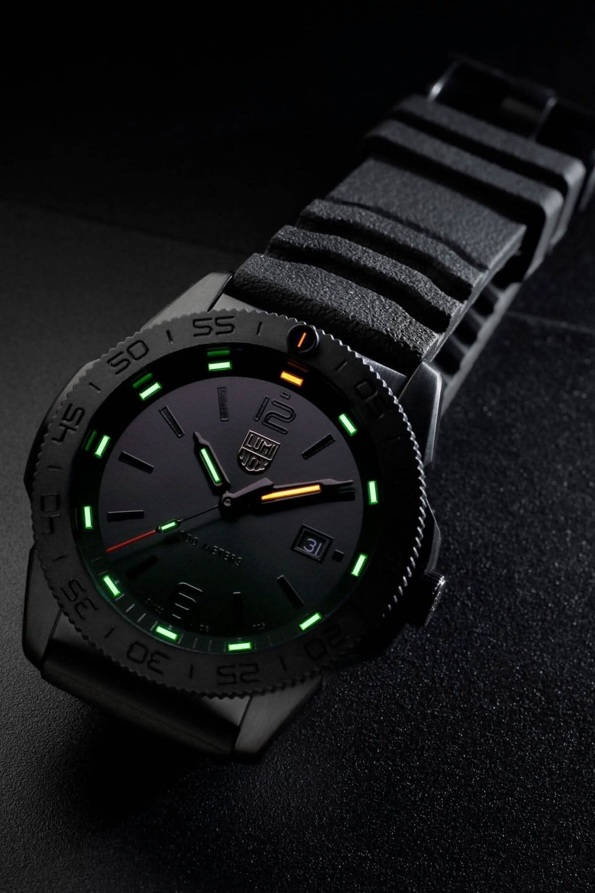 La série Pacific Diver 3120 est une toute nouvelle série dans la dimension Luminox SEA. Cette montre décontractée attrayante pour les explorateurs en plein air reste fidèle à l'ADN de la marque tout en combinant un boîtier en acier inoxydable avec une lunette en CARBONOX™, résultant en une fusion de matériaux accrocheuse.