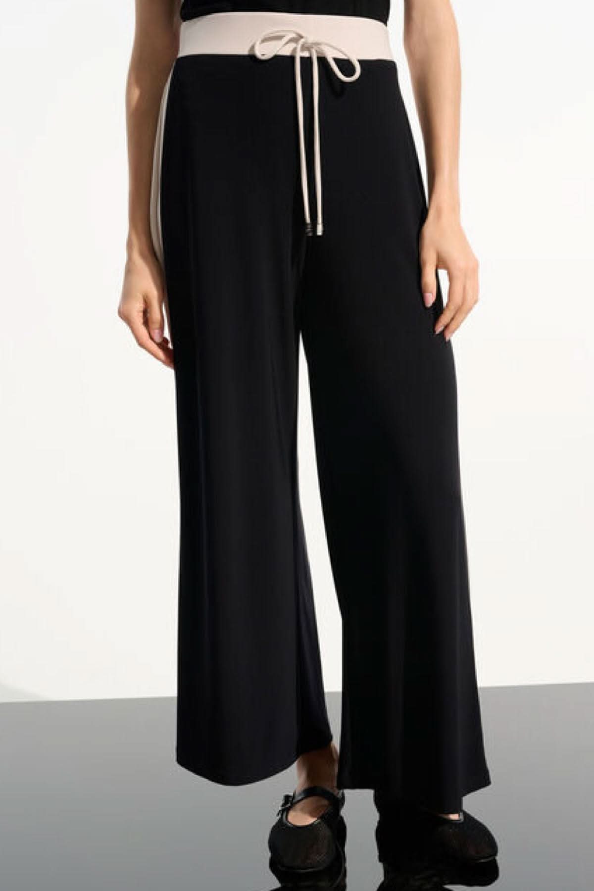 Description : Pantalon fluide à jambe large offrant un tombé élégant et une allure décontractée. Sa taille contrastante munie d’un cordon à nouer ajoute une touche sportive chic tout en assurant un ajustement confortable. Parfait pour un look raffiné au quotidien ou un style détente sophistiqué.