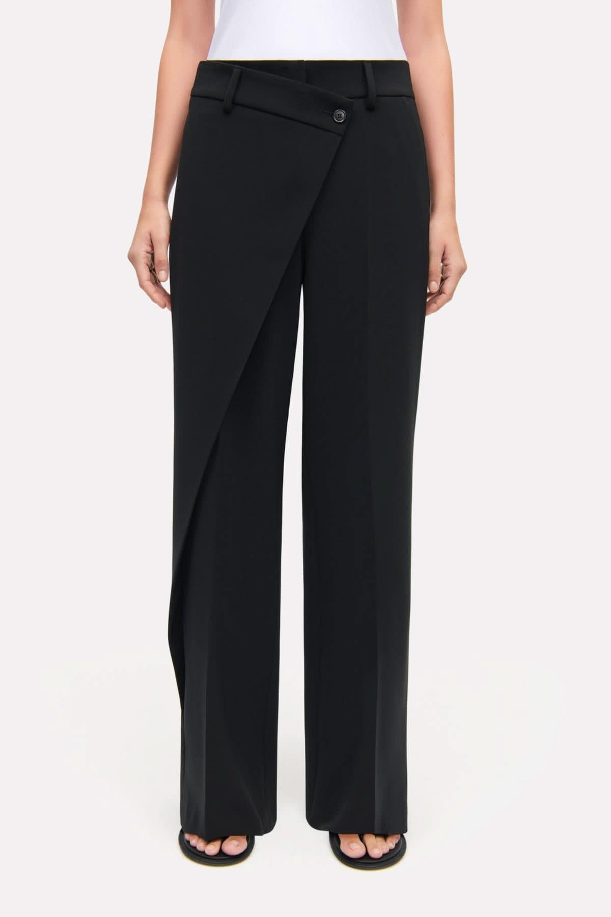 Description: Ce pantalon à jambe large mise sur une silhouette flatteuse et fluide, idéale autant pour le bureau que pour le quotidien. La taille est soulignée par une bande montée façon wrap à l’avant, apportant une touche moderne et structurée à l’ensemble. Le tissu microstructuré, souple et léger, offre un tombé impeccable et un confort remarquable. Conseil style : associez-le à un haut cintré rentré dans la taille pour mettre en valeur la finition croisée.