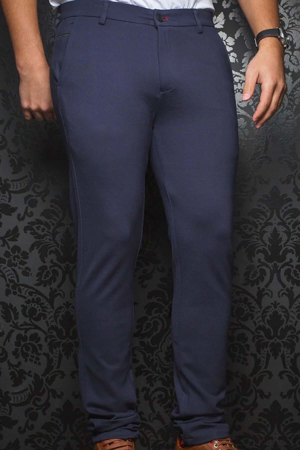Pantalon Beretta en tissu extensible, coupe fuselée, couleur marine, parfait pour le bureau ou les sorties.