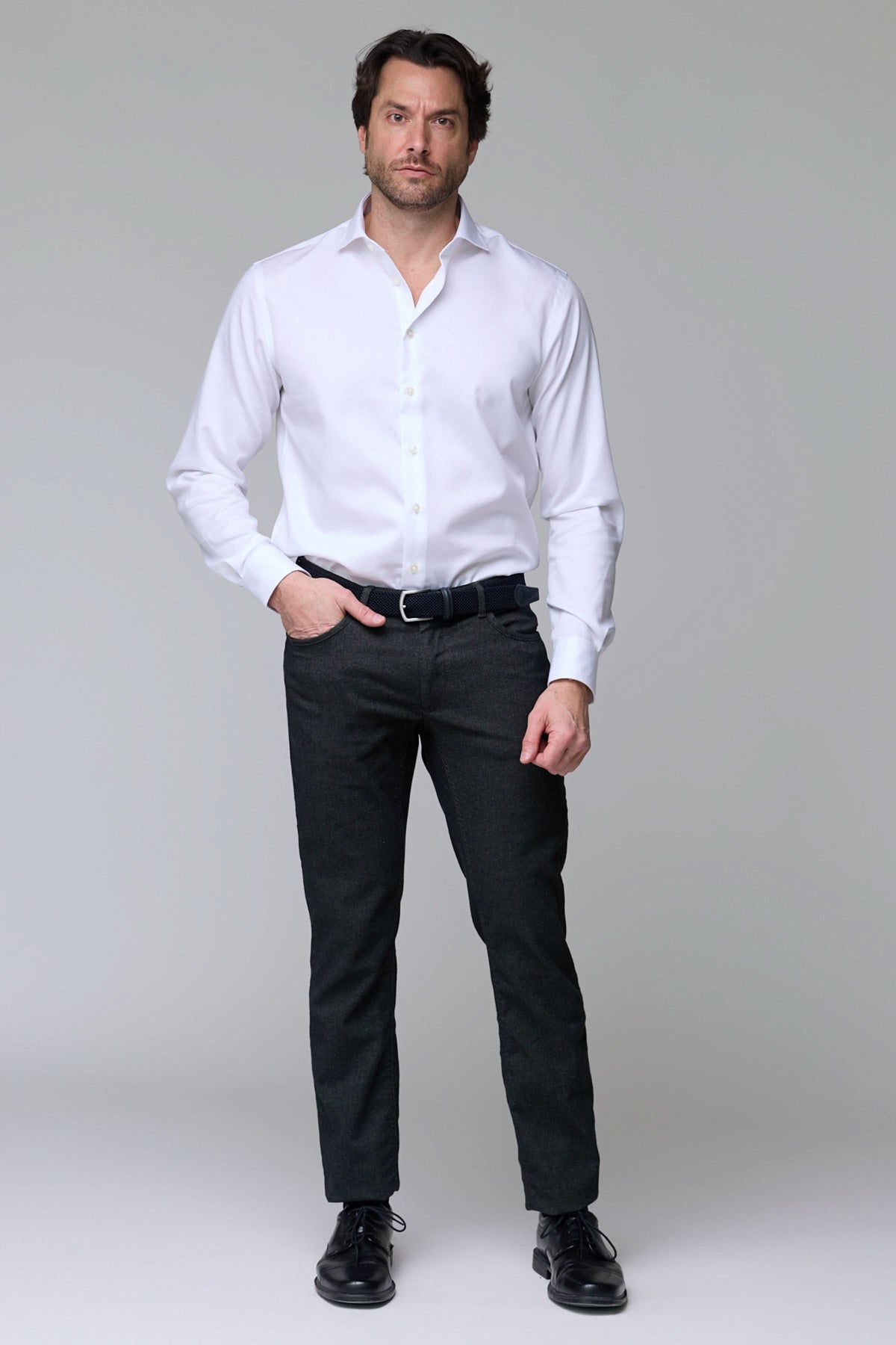 Description : Ce pantalon en laine extensible offre une coupe moderne et un confort supérieur. Idéal pour le bureau comme pour les occasions habillées, il marie élégance classique et liberté de mouvement.