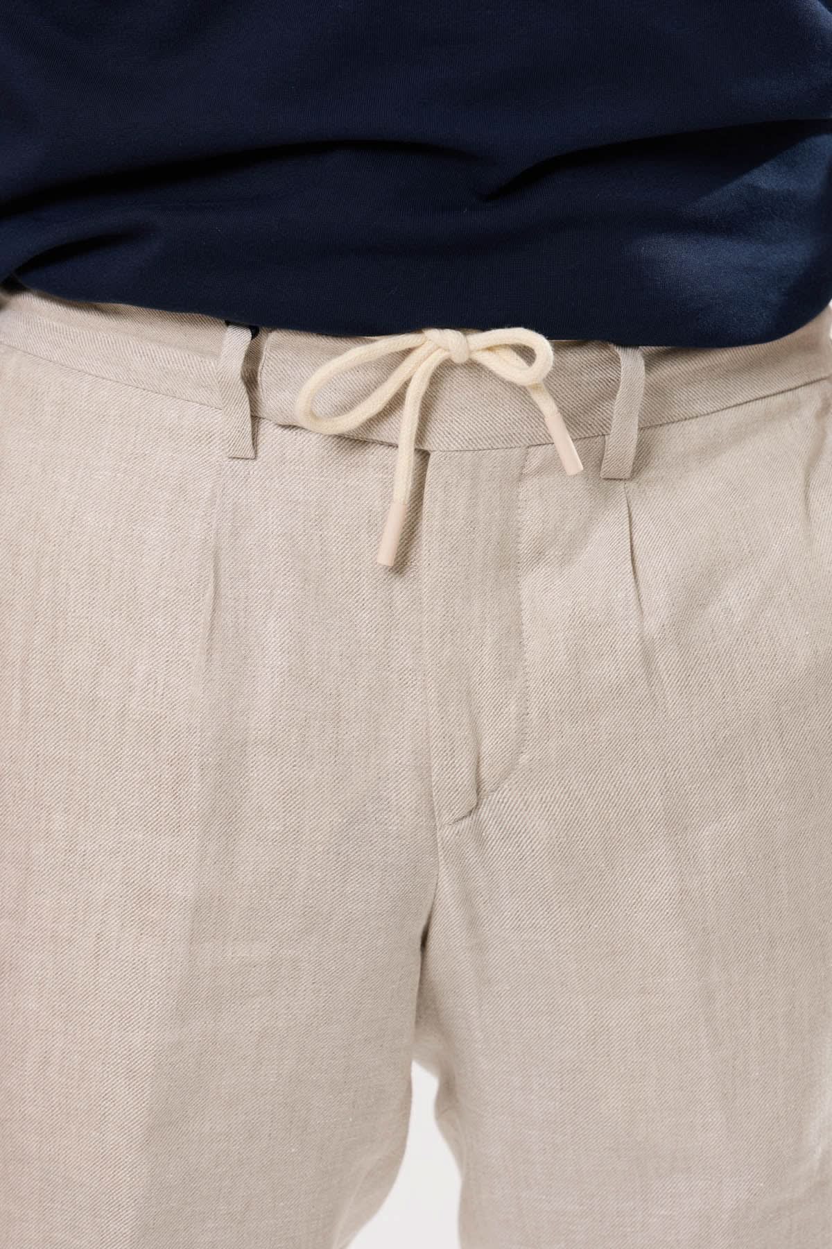 Description: Ce pantalon en lin à taille élastique offre une allure estivale décontractée et élégante. Léger et respirant, il est parfait pour les journées chaudes tout en conservant une coupe structurée grâce à ses plis français. À porter avec un t-shirt ou une chemise pour un style naturel et raffiné.