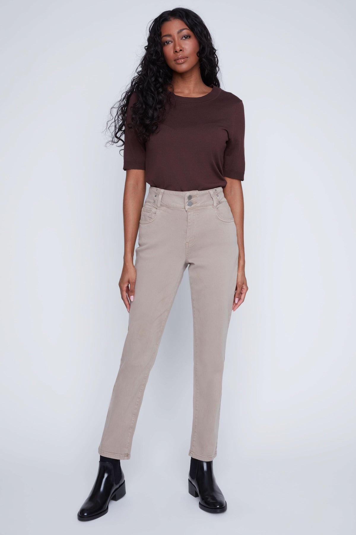 Description: Ce pantalon à coupe droite et taille haute offre une silhouette élancée et élégante. Sa conception minimaliste et sa matière confortable en font un indispensable du quotidien, adapté autant pour un style décontracté que professionnel. Conseil style : associez-le à un haut ajusté ou à une blouse fluide pour un look soigné.