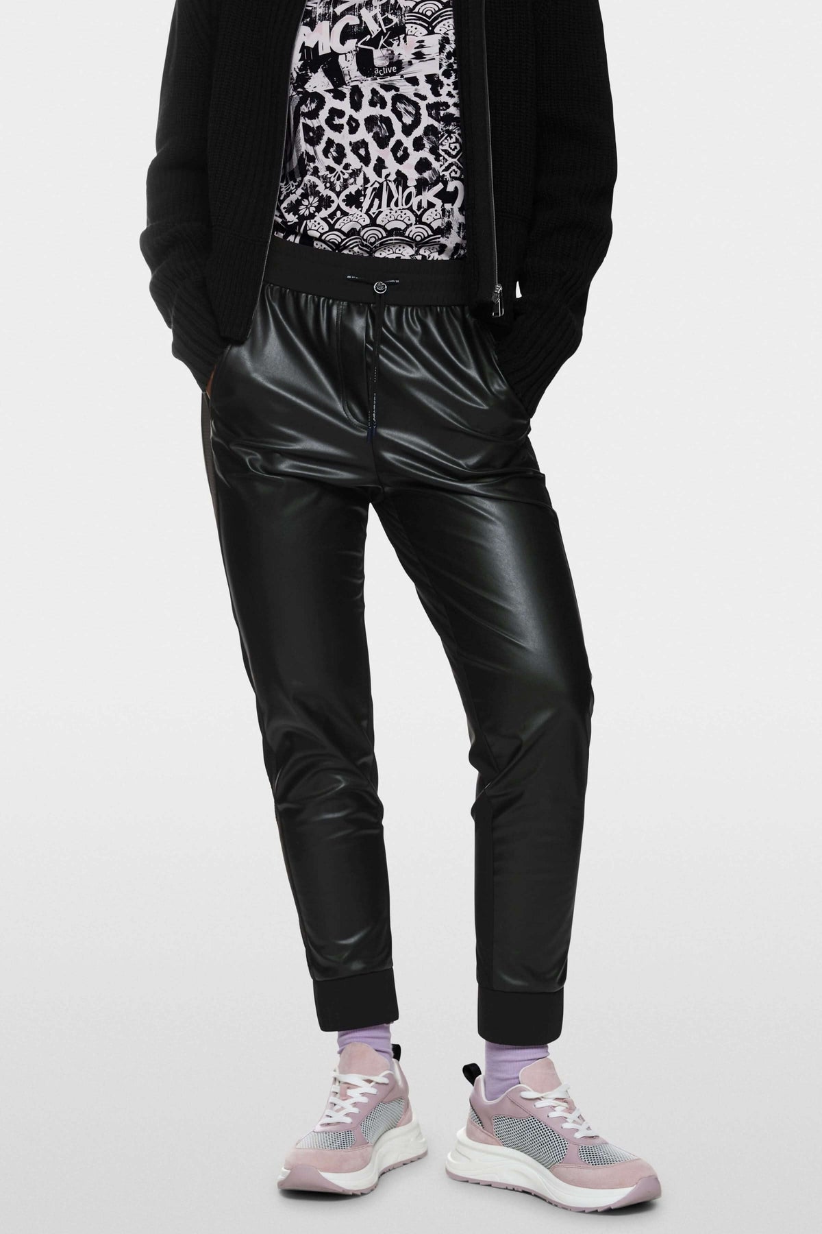 Description: Ce pantalon effet cuir revisite le style sportswear avec une touche moderne et audacieuse. Sa taille élastique et sa coupe fuselée apportent confort et liberté de mouvement, parfait pour un look tendance au quotidien. Conseil style : associez-le à des baskets pour un style urbain décontracté ou à des bottines pour une allure plus affirmée.