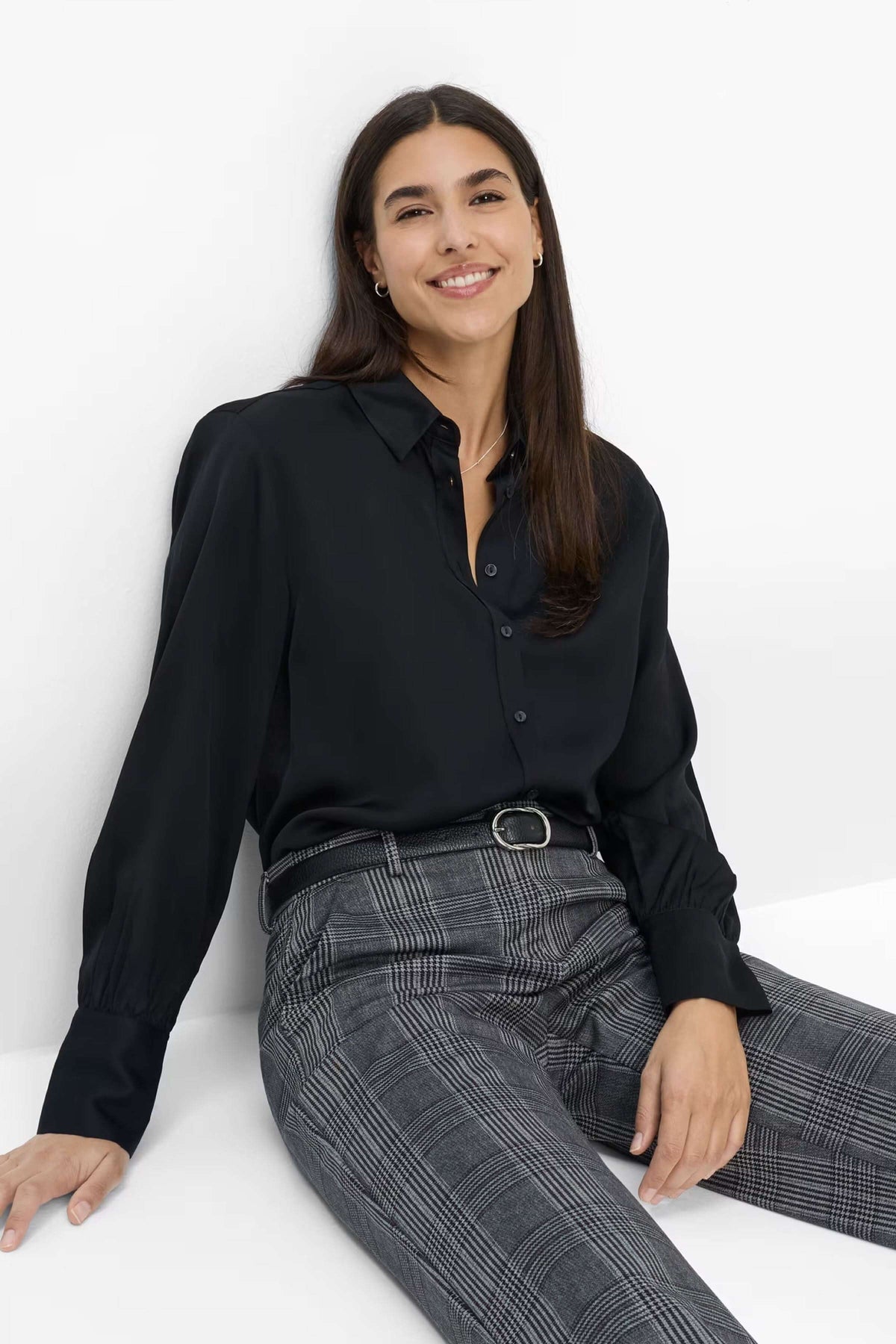 Description: Ce pantalon à carreaux allie élégance classique et confort moderne. Sa coupe ample et fluide offre une silhouette sophistiquée, parfaite pour le bureau comme pour les sorties. Conseil style : portez-le avec une chemise noire rentrée et des chaussures pointues pour un look chic et raffiné.