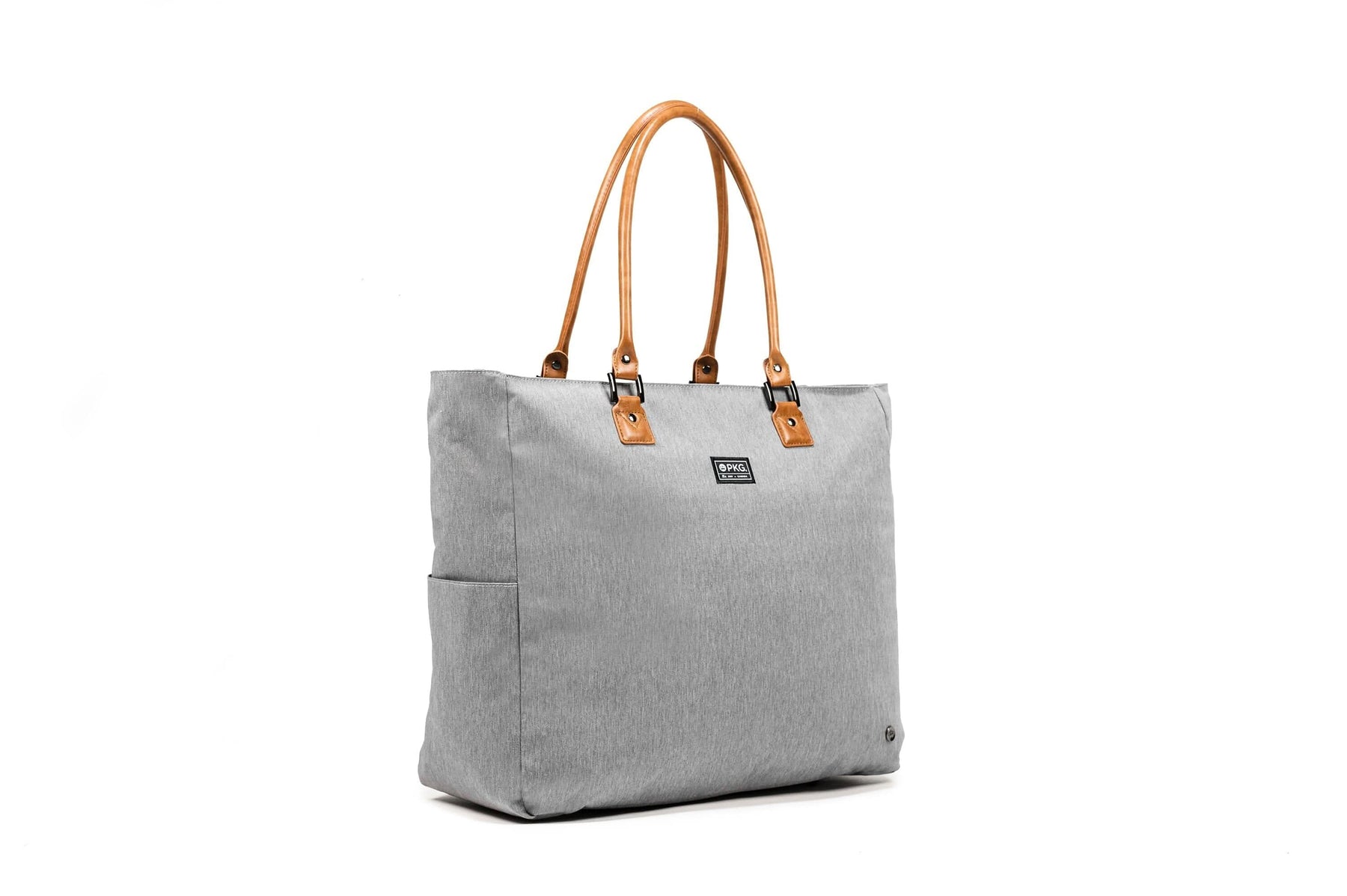 PKG Georgian 33L tote bag in grey with faux leather accents and padded base for travel and overnight trips.