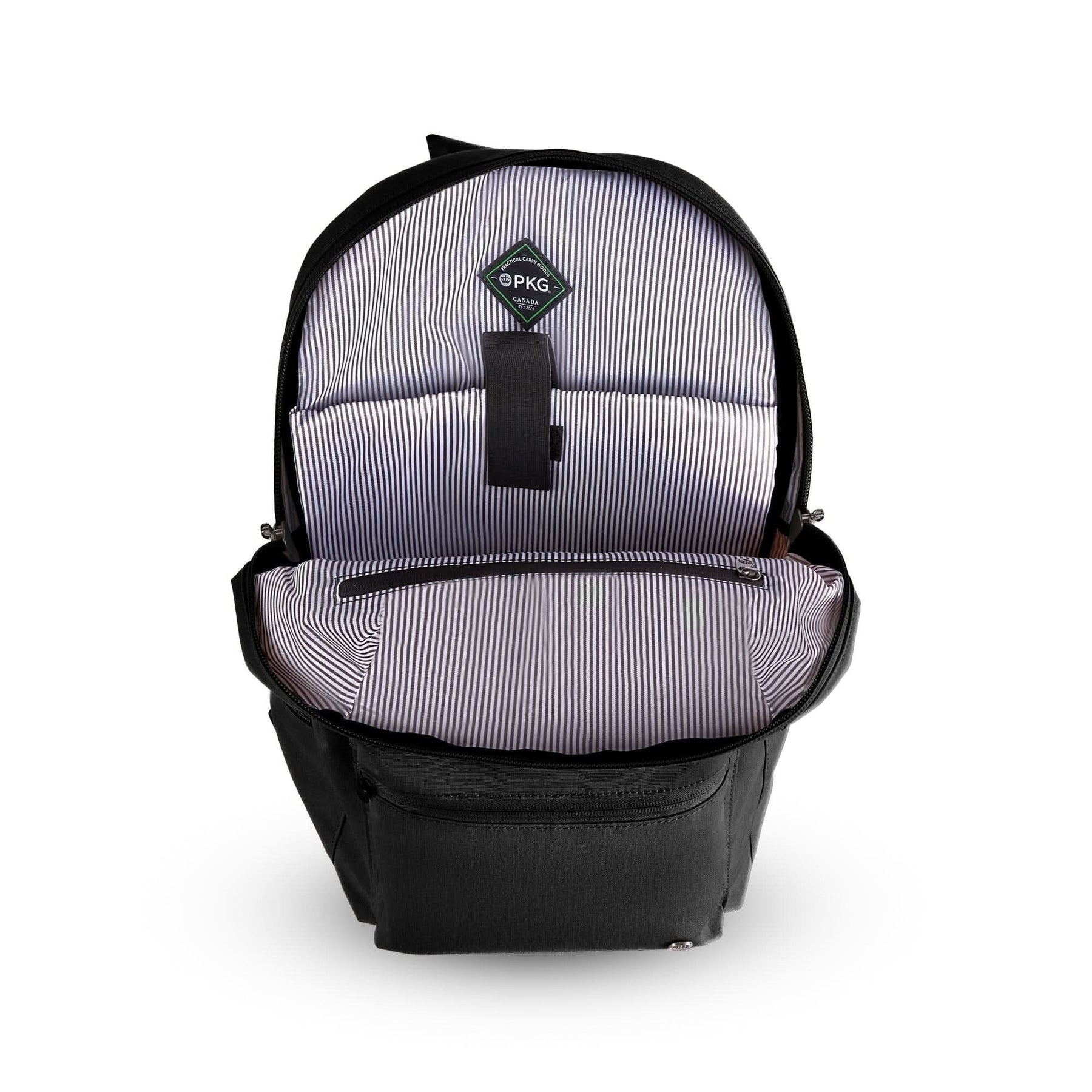 • Noir lisse | intérieur en polyester 210D recyclé à rayures blanches
