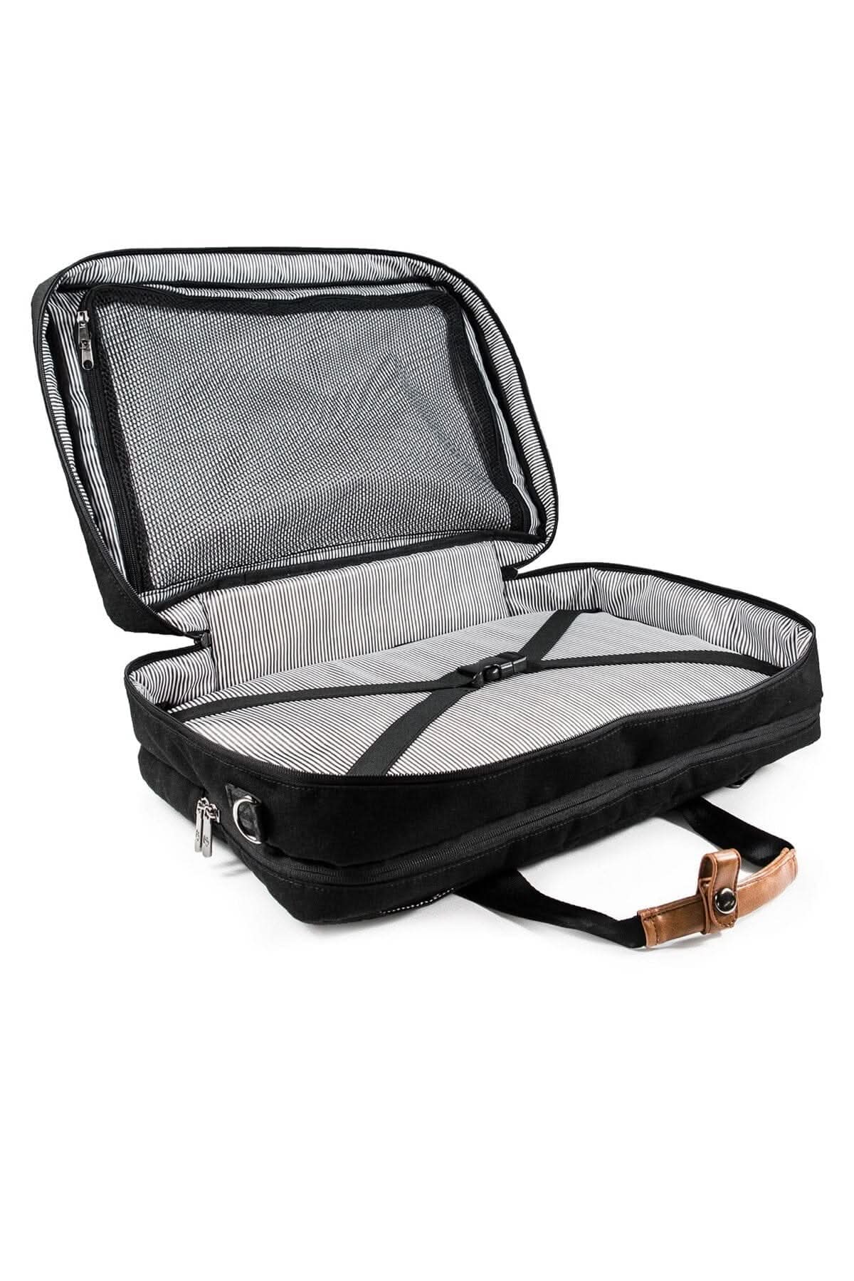 • Le compartiment principal s'ouvre à plat avec des sangles à bagages et une organisation de poche zippée en filet sur la paroi supérieure