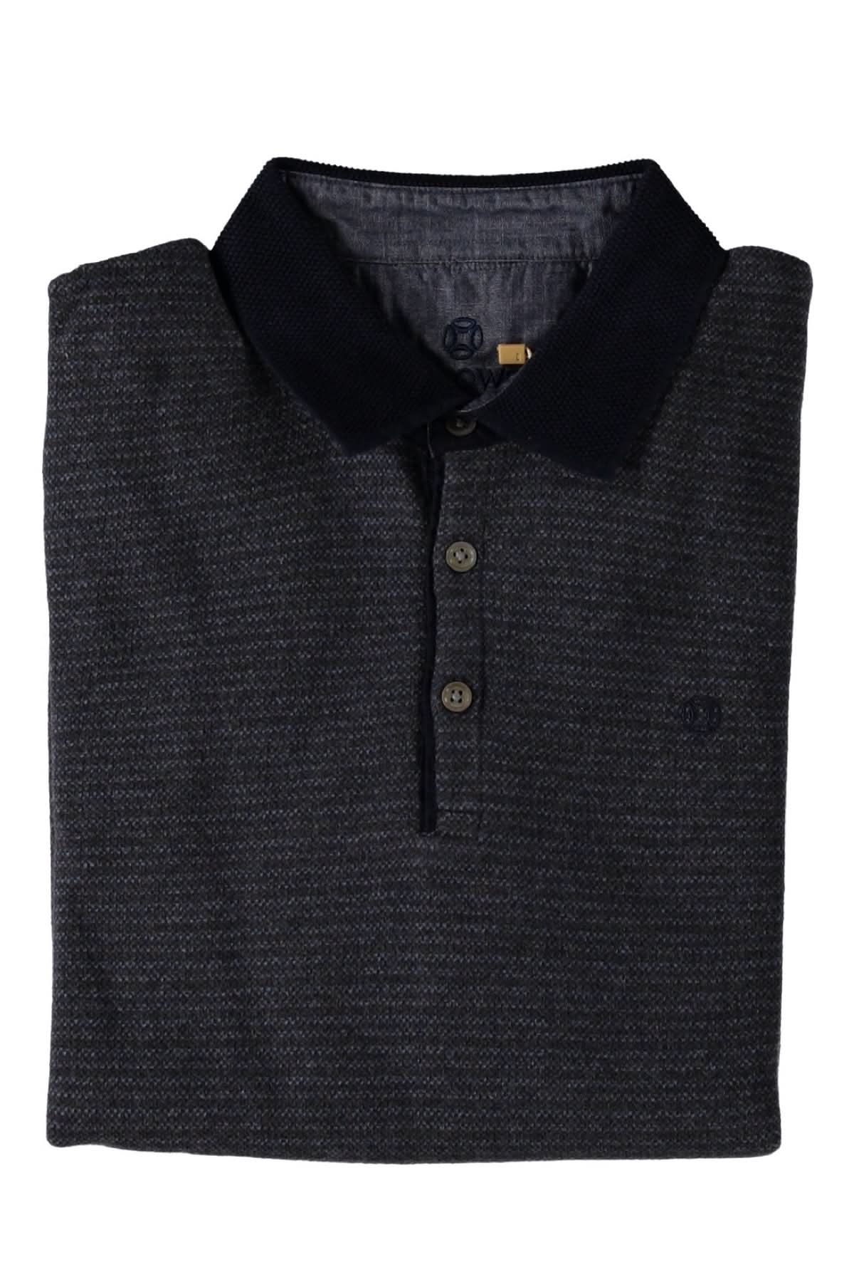 DESCRIPTION: Ce polo à manches longues et coupe régulière, orné de rayures, allie confort et style classique. Les trois boutons permettent d'ajuster l'encolure en V pour un look personnalisé. Associez-le à un pantalon droit pour une allure décontractée mais soignée.