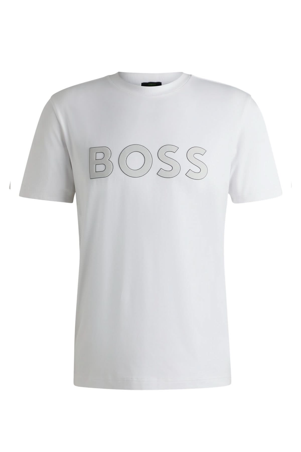 Description: Ce t-shirt moderne revisite l’essentiel du vestiaire masculin avec un logo texturé en relief qui attire le regard. Confectionné dans un jersey doux et extensible, il assure un confort optimal tout au long de la journée. Un choix parfait pour un look casual affirmé, à porter avec un chino ou un denim.