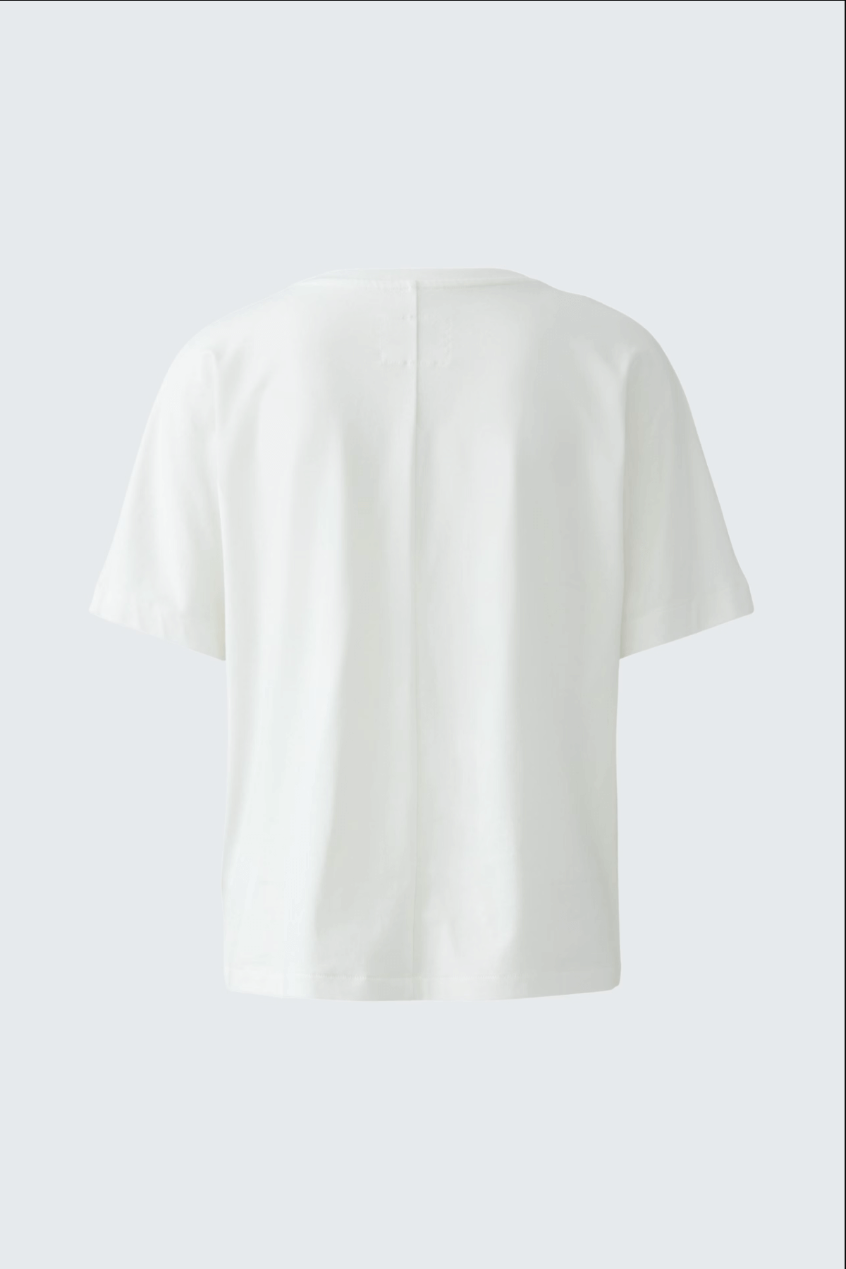 Description : Ce t-shirt présente un motif dessiné à la main, embelli de fines pierres ton sur ton pour une finition raffinée. Conçu dans un mélange de coton et de modal doux et extensible, il assure confort et légèreté. Sa coupe oversize et sa longueur régulière créent une silhouette moderne et décontractée. Le col rond généreux et les demi-manches à découpe apportent une touche d’originalité au design.