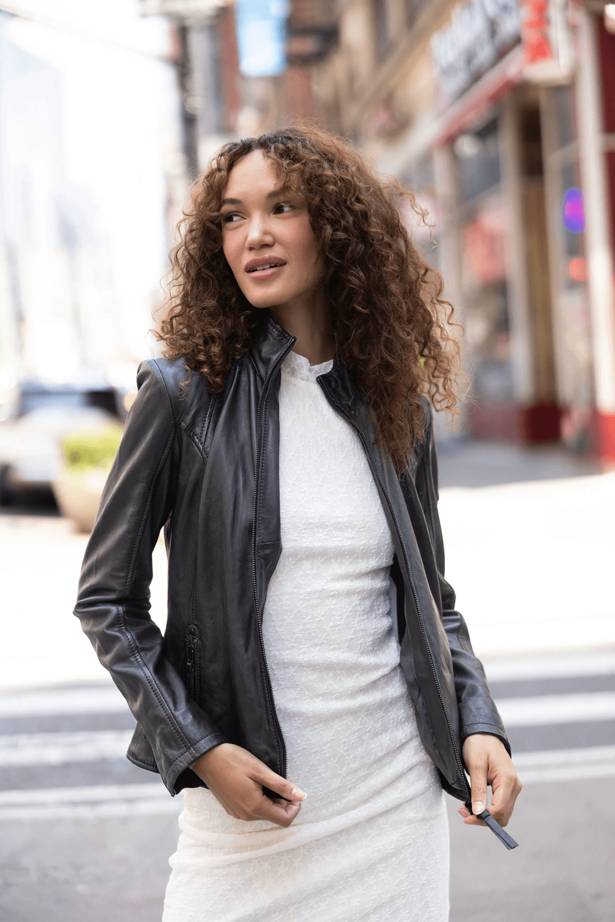 Description: Cette veste en cuir véritable incarne l’élégance intemporelle avec sa coupe ajustée et son style minimaliste. Conçue pour s’adapter facilement à différents looks, elle se porte aussi bien sur une robe élégante que sur un jean décontracté. Une pièce essentielle qui conjugue raffinement et modernité.