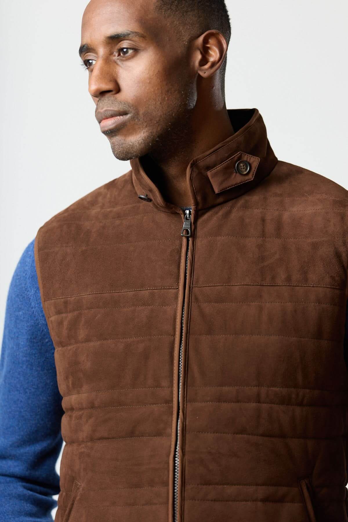 Description : Cette veste sans manches Waterville se distingue par son allure raffinée et contemporaine. Confectionnée en simili suédé doux à l’avant et en tissu lisse contrastant à l’arrière, elle allie élégance et praticité. Légèrement matelassée, elle offre confort et chaleur tout en conservant une silhouette structurée. Parfaite pour compléter un chandail en laine ou une chemise, elle s’impose comme une pièce incontournable du vestiaire masculin.