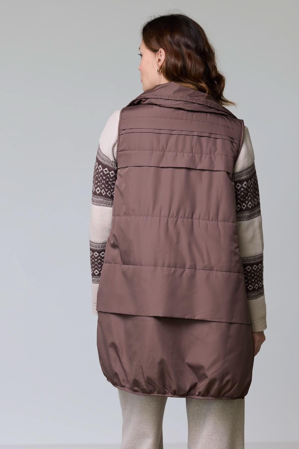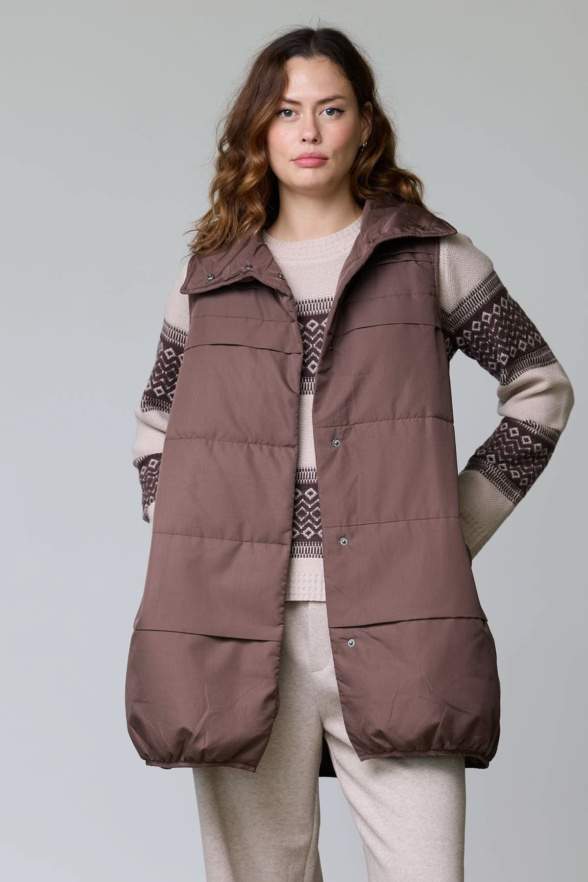 Description : Cette veste sans manches matelassée allie chaleur et légèreté, parfaite pour la mi-saison. Son design long et moderne offre une silhouette élégante tout en assurant un confort optimal.