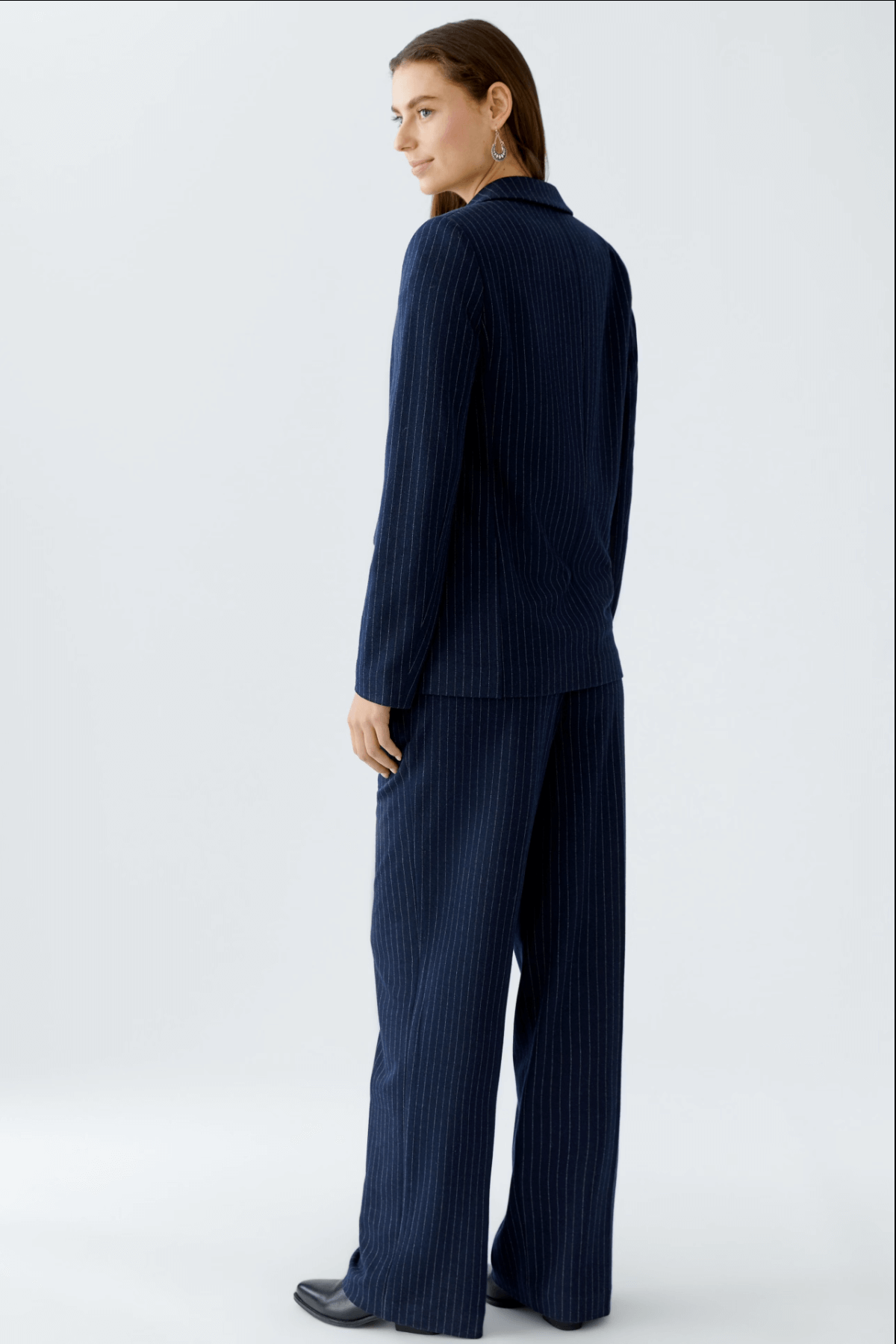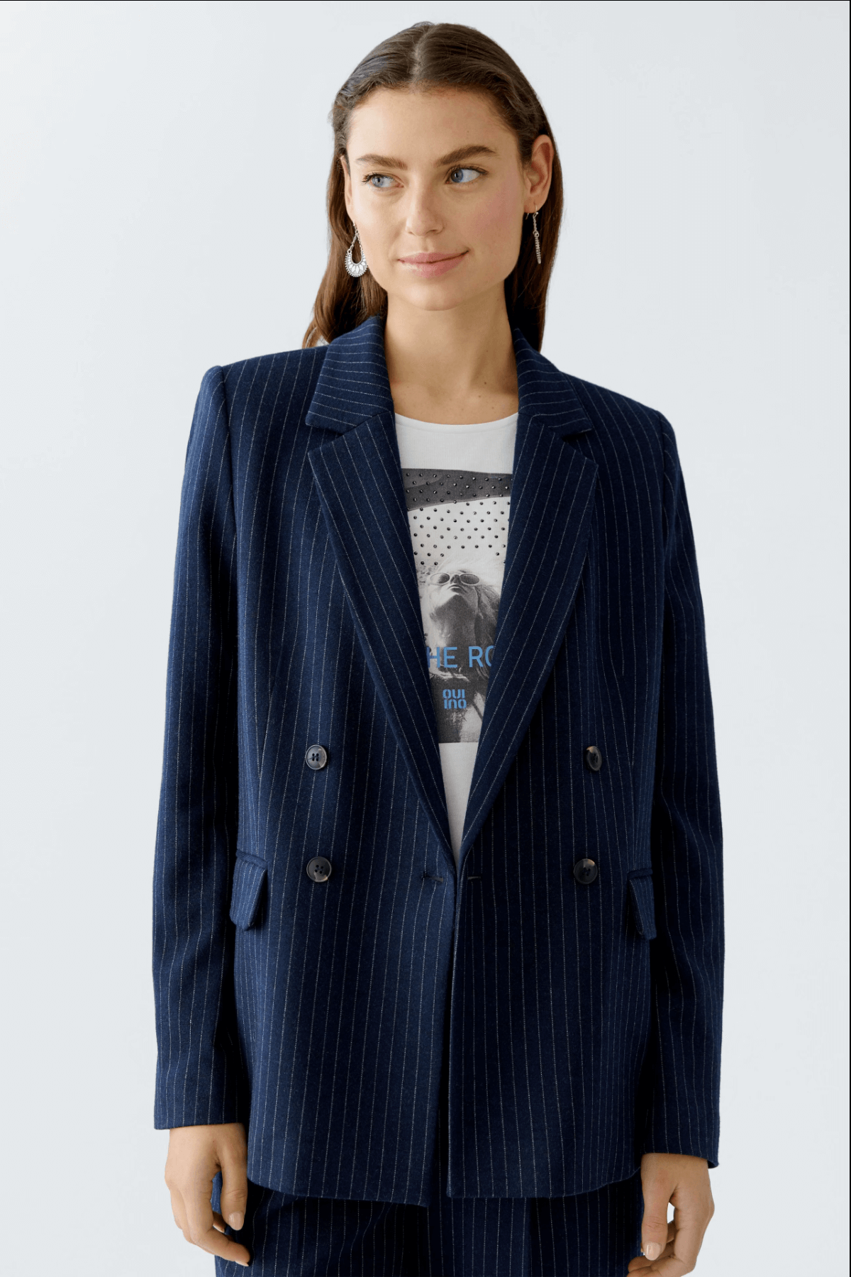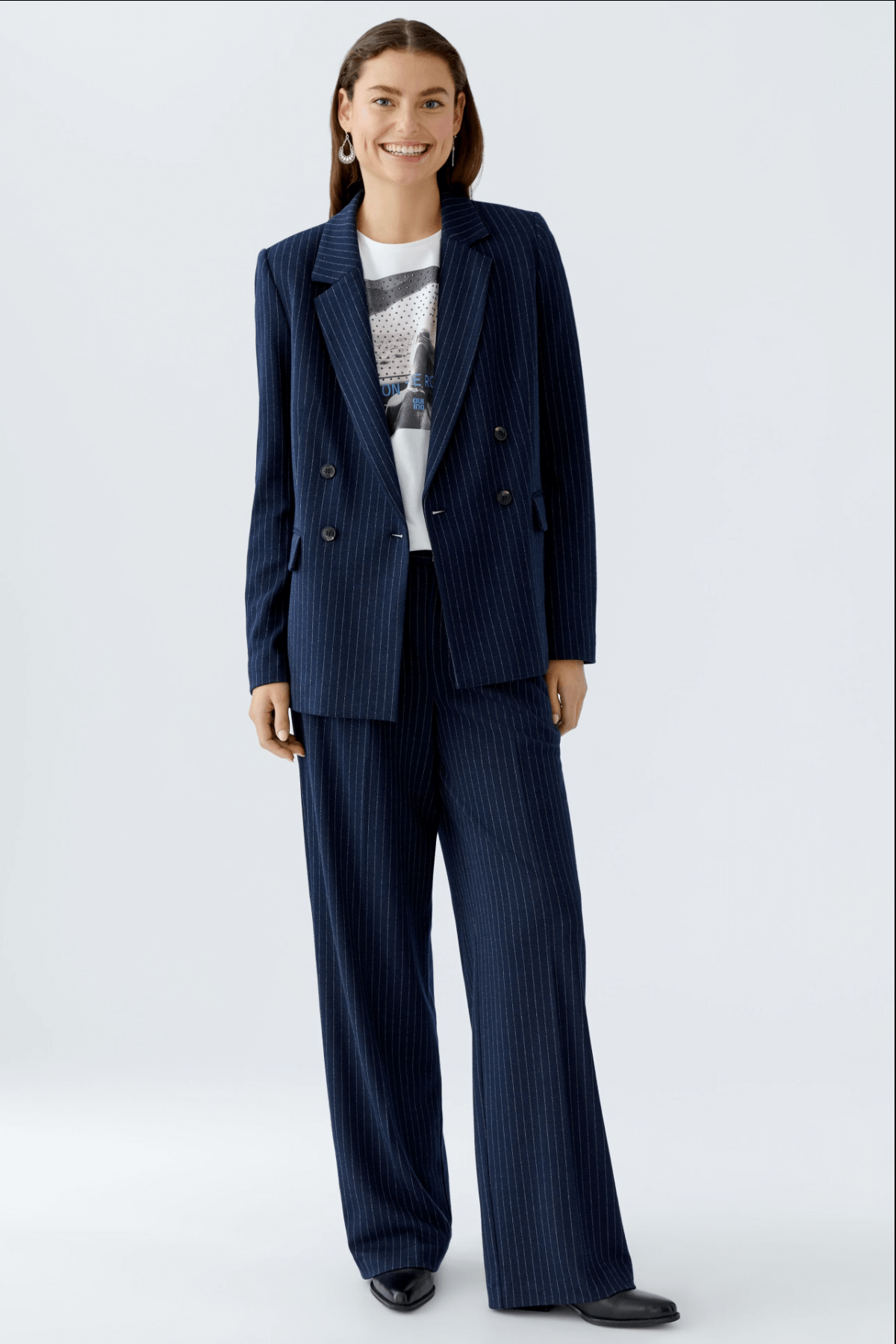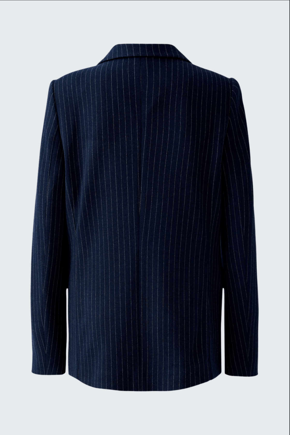 Description : Ce veston en jersey doux marie confort et élégance avec ses rayures discrètement tissées. Sa coupe décontractée et son double boutonnage lui confèrent une allure à la fois moderne et sophistiquée. Portez-le sur un pantalon ajusté ou une jupe crayon pour un look professionnel chic.