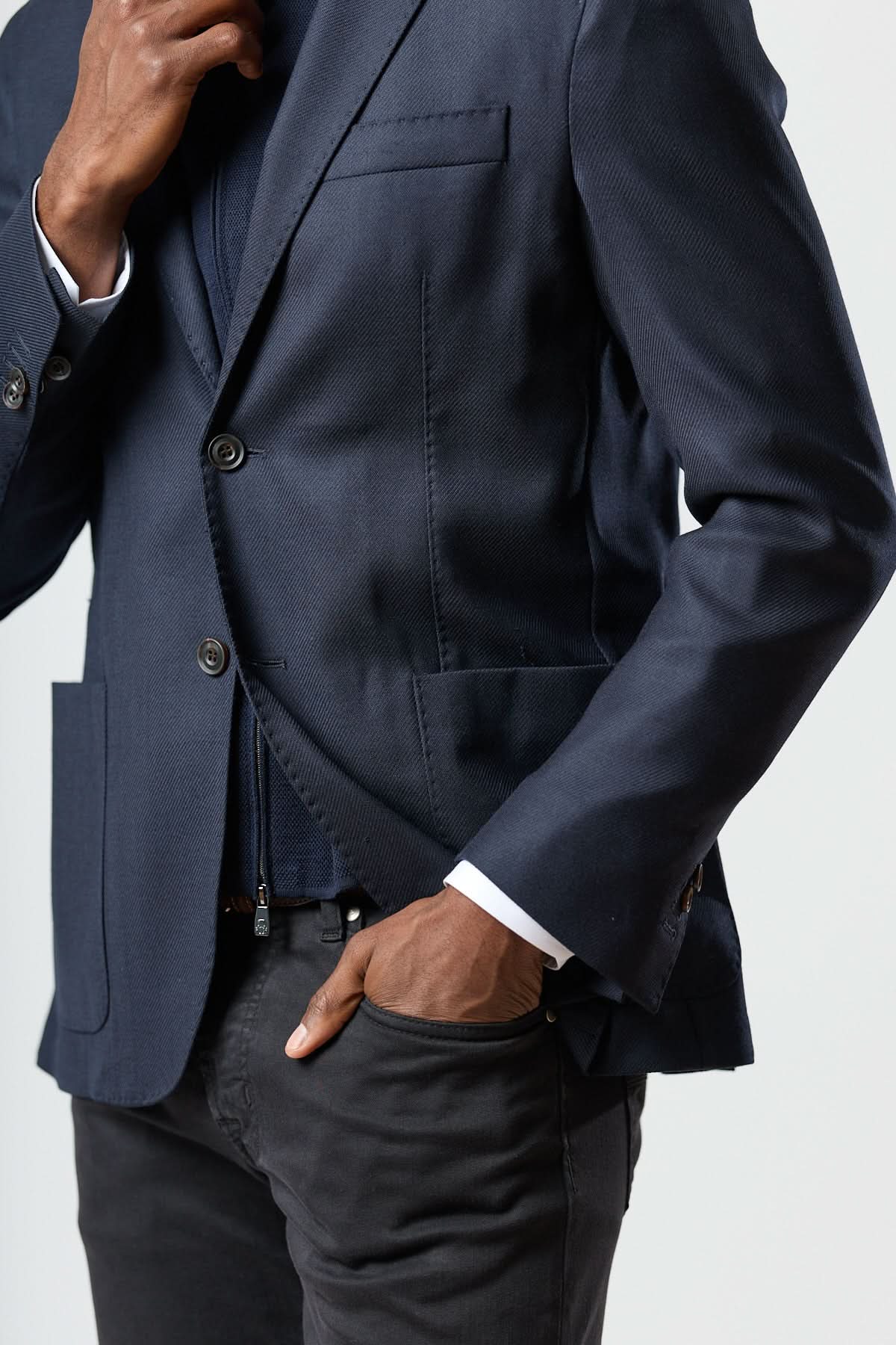 Poches plaquées à l’avant et poche poitrine passepoilée